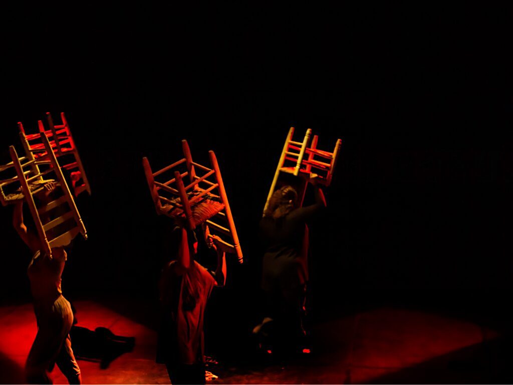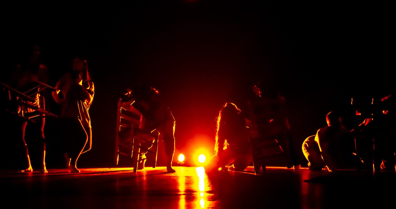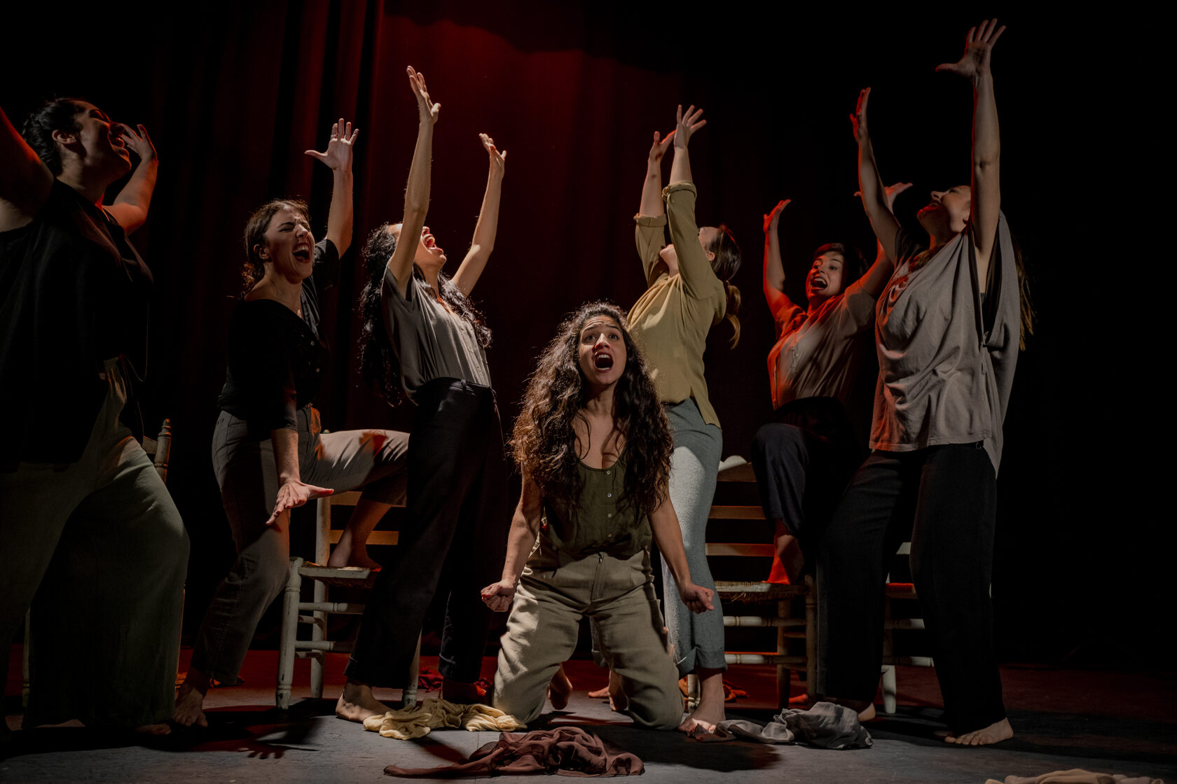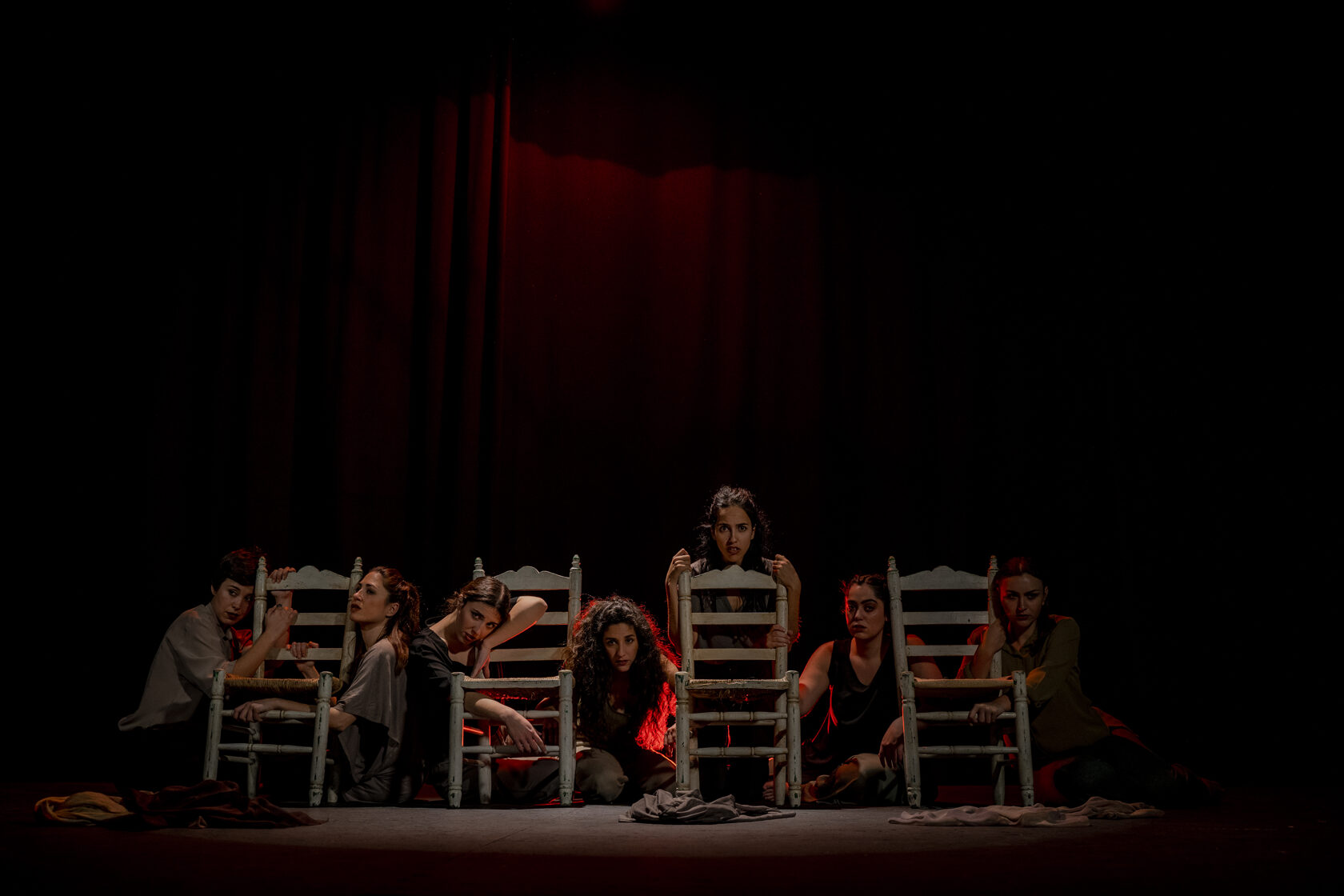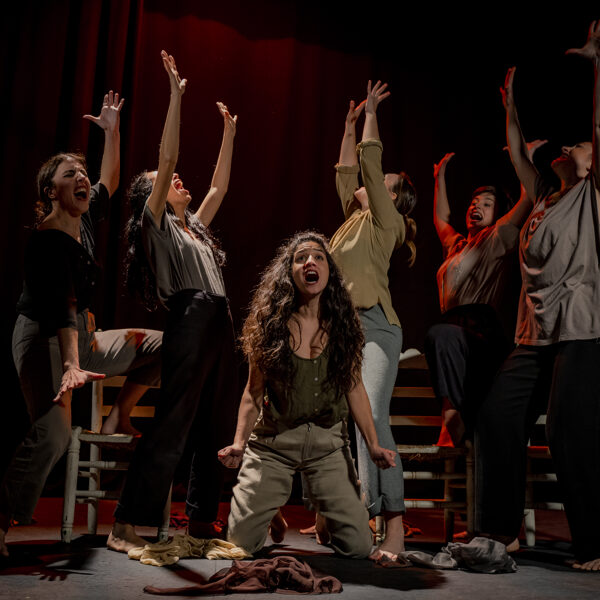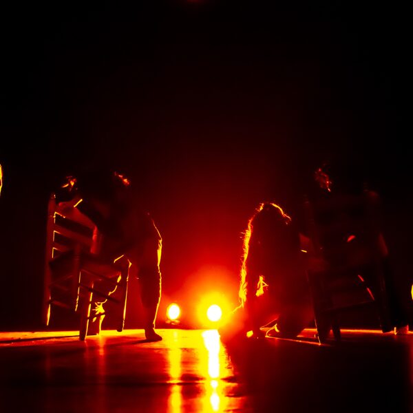 Enlorquecidas hace un recorrido desde una energía sombría, llena de colores oscuros, hasta la aparición de colores vivos, como símbolo de libertad. Bernarda Alba ya dijo “Ojalá tardéis muchos años en pasar el arco de mi casa” y Julieta en El Público “No he tropezado con una amiga en todo el tiempo, a pesar de haber cruzado más de tres mil arcos vacíos”. Esta obra invita, precisamente, a un viaje a través del “arco”. Un arco que nos llama hacia el cambio. Un camino que se muestra a través de las mujeres y sus ropas, y de sillas en movimiento, que forman parte de ese mundo sin luz. Elementos que ayudan a estas mujeres atemporales en su transformación a lo largo de la obra. Todo ello acompañado en directo por el flamenco con música en vivo.